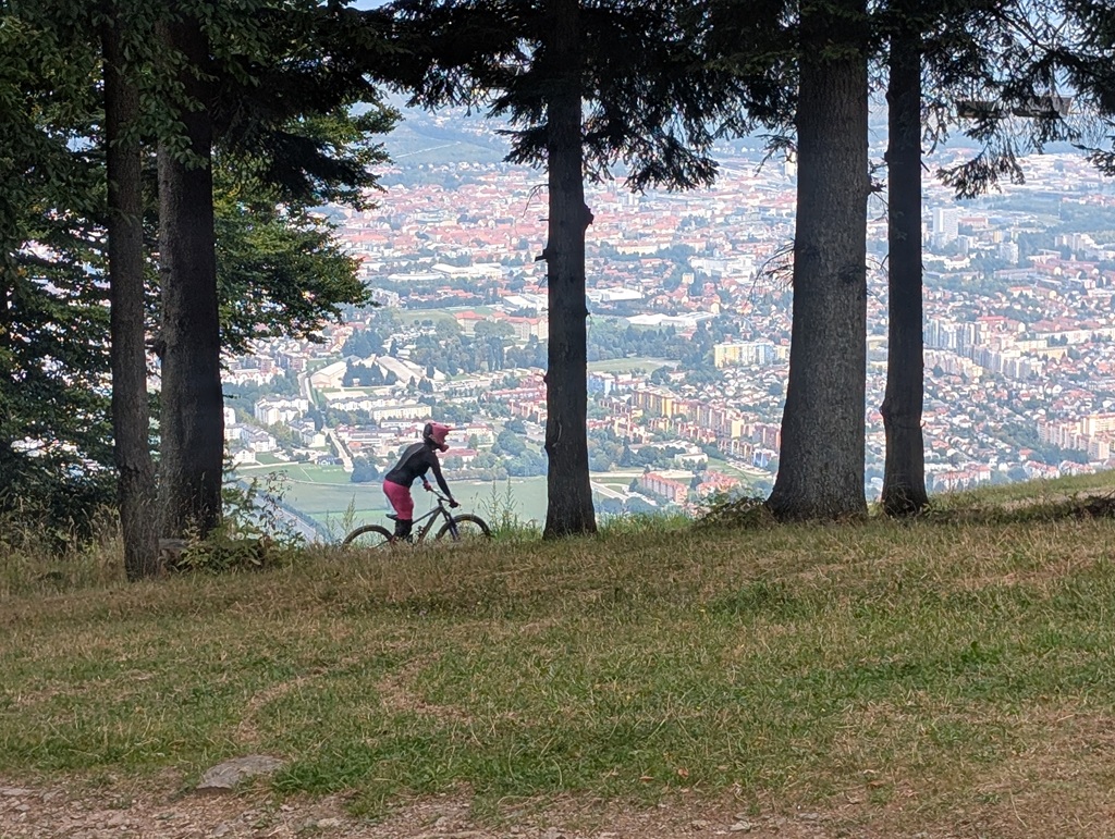 Am Dienstag ging es weiter nach Maribor. Die Fahrt dauert nur knapp 2 Stunden und verläuft für einmal nicht auf Autobahnen schön entlang des Flusses Drau. Wir haben auch hier wieder für 3 Nächte auf dem Camping Center Kekec gebucht. Die "Buchung" erfolgte via E-Mail mit einer Bestätigung einen Tag vorher, dass wir auch wirklich kommen. Es ist ein kleiner Campingplatz direkt in der Nähe vom Skigebiet Pohorje, welches im Sommer für seinen Bikpark bekannt ist, welcher auch unser Ziel war. 10 Minuten vor Ankunft fragten wir uns, wo denn nur die Berge sind... Wir hatten uns Maribor definitiv anders vorgestellt als bekanntes Skigebiet - es liegt jedoch nur 275 Meter über Meer und der Berg Pohorje ist auch nur 1543 Meter über Meer. Dies änderte jedoch nichts daran, dass wir uns am nächsten Tag zum Pohorje Bikepark aufgemacht haben - für einmal nur Downhill und Uphill mit der Gondel. Es gibt dort diverse Downhill Lines, unter anderem auch die World Cup Line, welche wir jedoch mit unseren Bikes nicht gefahren sind. So ging es einige Male wieder hoch, bis sowohl wir wie auch das Material genug hatten. In der Talstation gibt es die Möglichkeit die Bikes zu Waschen und es hat auch noch eine kleine Bar. Die Mittagspause hatten wir in der Mitte der Abfahrt im Koca pri Brancu gemacht, wo es auch eine grossartige Aussicht auf Maribor hat.